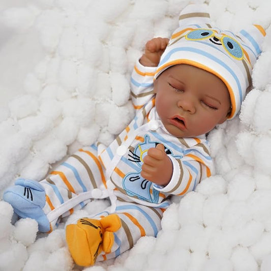 Lifelike Reborn Baby Doll Black Boy - 18 Inch Soft Body Realistic Newborn Baby Dolls Silicone Real Life Dark Skin Baby Dolls with Accessories Toy Set Birthday Gift for Kids Age 3+