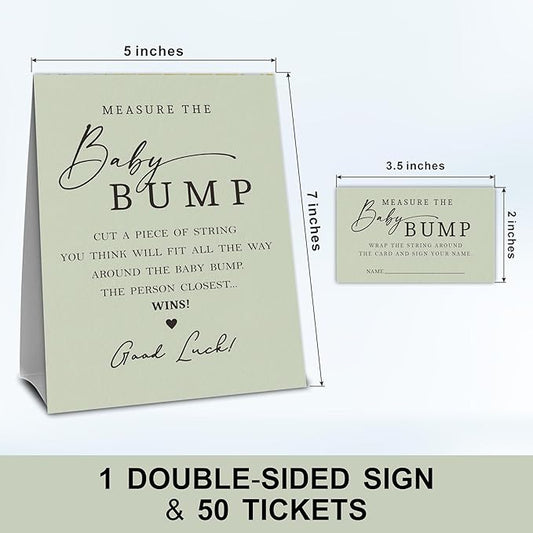 Light Green Baby Shower Measure The Baby Bump, Measure Mommy's Belly Game Set - 1 Self-Standing Sign And 50 Tickets - Gender Reveal, Baby Shower, Baby Announcement Activity & Party Favor Supplies -A13