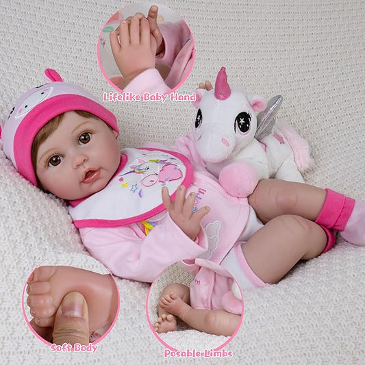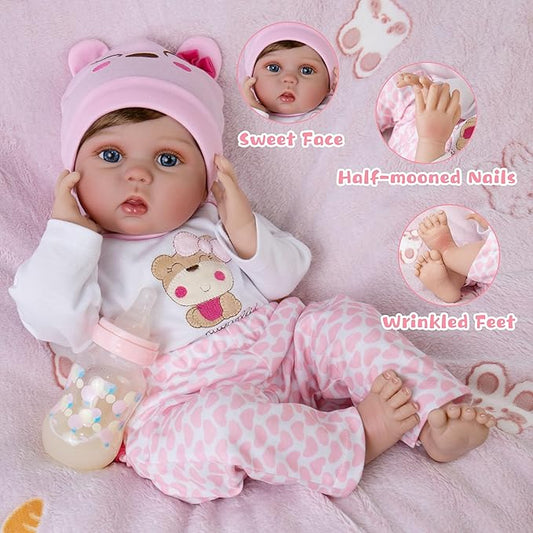 Lifelike Reborn Baby Dolls, 22-Inch Soft Cloth Body Realistic Baby Dolls with Clothes and Toy Accessories - Birthday Gift for Kids 3+