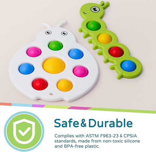 LiKee Fidget Popper Sensory Baby Toys for 10+ Months, Push and Popping Busy Board, Montessori Toys for 1+ Years Old, Airplane Car Travel Toy for Toddlers 1-3 Stress Relief (2 Pieces)