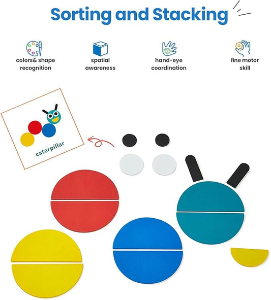 LiKee Open Ended Wooden Shape Puzzles with 36 Blocks and 60 Pattern Shapes for Toddlers 3+ Years Old, Montessori Toys Preschool Education Activity for Kids 4-8 Yrs
