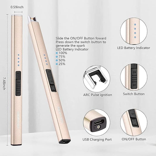 Lighter Electric Candle Lighter Long Electronic Rechargeable USB Arc Windproof Flameless Lighters for Candle Camping BBQ Birthday Women's Day Gifts for Women Mom Wife Men, Gold