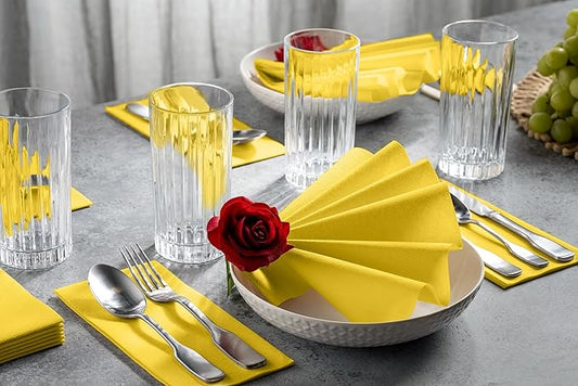 Linen-Feel Ywllow Paper Napkins - Decortive Cloth-Like Disposable Dinner Napkins - Soft And Absorbent Napkins for Thanksgiving, Party, Wedding, Bathroom Or Any Occasion. (Pack of 100)