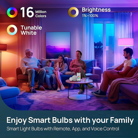 Linkind Smart Light Bulbs with Remote Control, Smart Bulb That Work with Alexa & Google Home, 16 Million Color Changing Light Bulbs 60W, A19 E26 2.4Ghz WiFi Light Dimmable,1800K-6500K,800lm 4 Pack