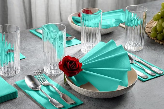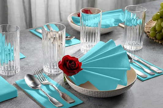 Linen-Feel Colored Paper Napkins - Decortive Cloth-Like Mint Blue Dinner Napkins - Soft And Absorbent. For Kitchen, Party, Wedding, Bathroom Or Any Occasion. (Pack of 100)