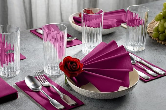 Linen-Feel Plum Paper Napkins - Decortive Cloth-Like Disposable Dinner Napkins - Soft And Absorbent Napkins for Thanksgiving, Party, Wedding, Bathroom Or Any Occasion. (Pack of 100)