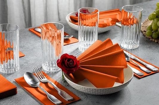 Linen-Feel Orange Paper Napkins - Decortive Cloth-Like Disposable Dinner Napkins - Soft And Absorbent Napkins for Thanksgiving, Party, Wedding, Bathroom Or Any Occasion. (Pack of 100)