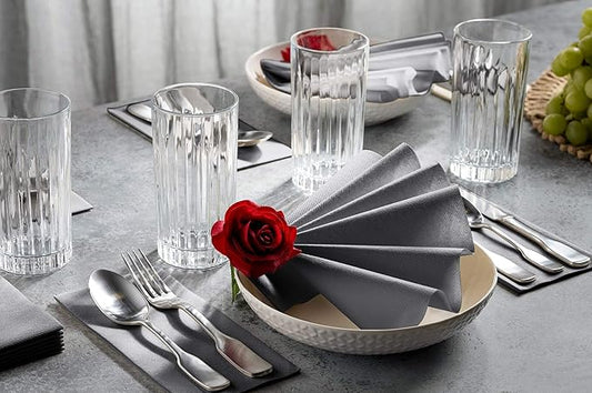 Linen-Feel Grey Paper Napkins - Decorative Cloth-Like Disposable Dinner Napkins - Soft And Absorbent Napkins for Thanksgiving, Party, Wedding, Bathroom Or Any Occasion. (Pack of 100)