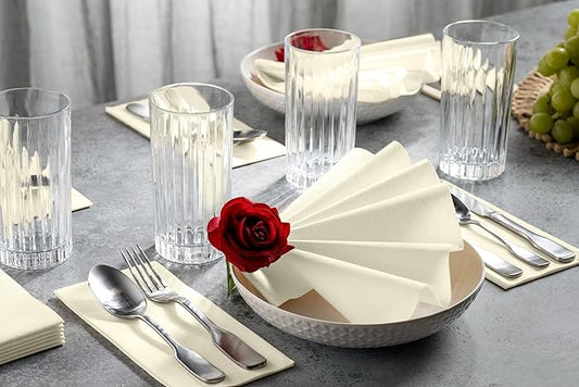 Linen-Feel Cream Paper Napkins - Decortive Cloth-Like Disposable Dinner Napkins - Soft And Absorbent Napkins for Thanksgiving, Party, Wedding, Bathroom Or Any Occasion. (Pack of 100)