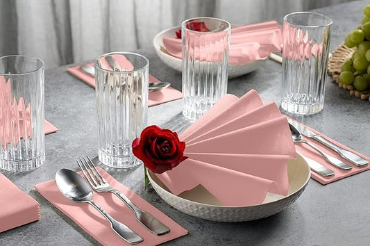 Linen-Feel Colored Paper Napkins - Decortive Cloth-Like Mellow Rose Dinner Napkins - Soft And Absorbent. For Kitchen, Party, Wedding, Bathroom Or Any Occasion. (Pack of 100)