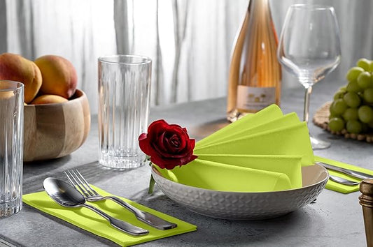 Linen-Feel Kiwi Paper Napkins - Decortive Cloth-Like Disposable Dinner Napkins - Soft And Absorbent Napkins for Thanksgiving, Party, Wedding, Bathroom Or Any Occasion. (Pack of 100)