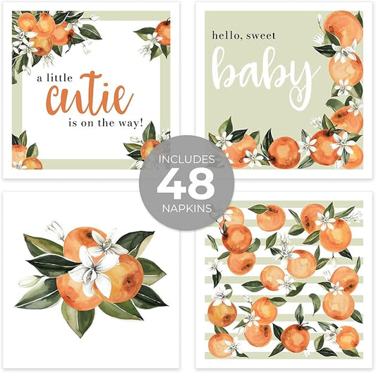 Little Cutie Baby Shower Beverage Napkins / 48 Citrus Cocktail Napkins / 4 Adorable Orange Clementine Designs / 4 3/4" x 4 3/4" Party 3 Ply Napkin Set/Made In The USA