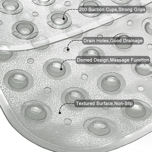 Linoows Bathtub and Shower Mats, Extra Long Non-Slip Bath Tub Mat 39 x 16 Inch, Machine Washable Bathmat with Suction Cups & Drain Holes for Bathroom Floor, Clear