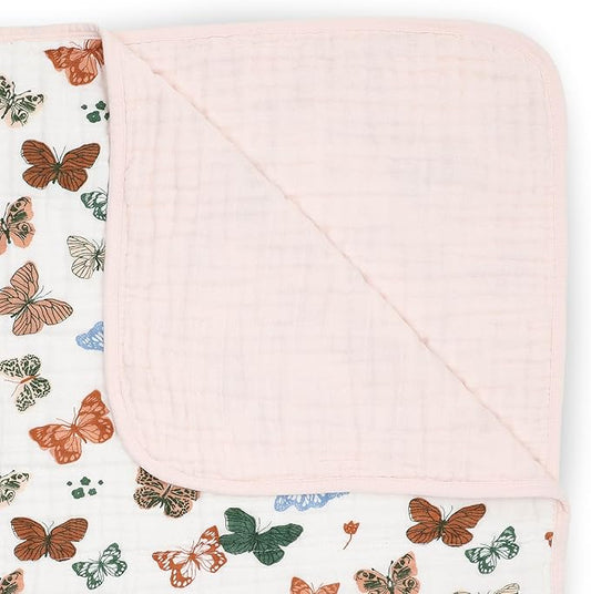 Little Unicorn Newborn Receiving Quilt | Ultra- Soft, Multi-Layered Muslin Fabric | Gift for Newborns & on-The-go (Butterflies)