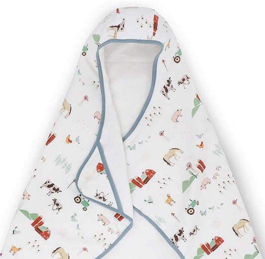 Little Unicorn Premium Hooded Bath Towel| Absorbent Cotton & Terry Blend | Larger Size, 1-6 Years (Farmyard)