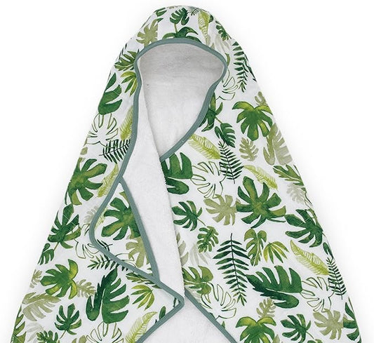 Little Unicorn Premium Hooded Bath Towel| Absorbent Cotton & Terry Blend | Larger Size, 1-6 Years (Tropical Leaf)