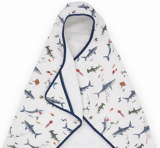 Little Unicorn Premium Hooded Bath Towel| Absorbent Cotton & Terry Blend | Larger Size, 1-6 Years (Shark)