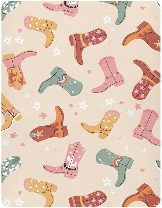 Lovely Cowboy Boot Crib Sheets for Neutral Bassinet Play Sheets,Sheets Toddler Bed Sheets for Baby Boys Girs 39 * 27 * 5in