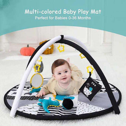 Lovvie & Joy Baby Play Activity Gym Tummy Time Mat for Infant,Baby Gyms & Playmats for Babies 0 to 3 6 9 12 Months with 5 Toys for Early Sensory Exploration and Motor Skill Development