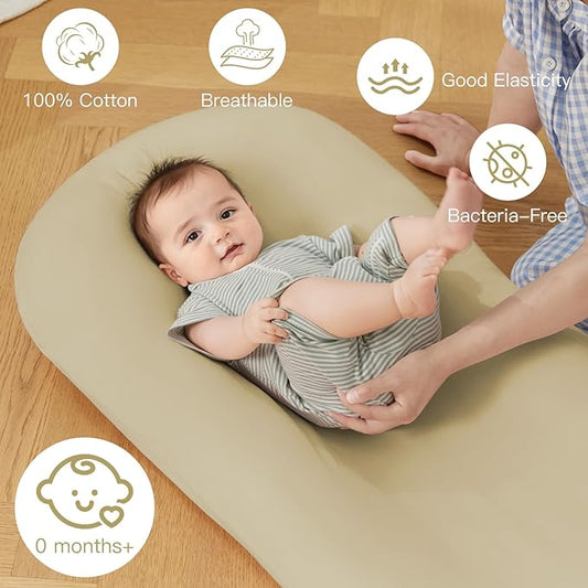 Lucakuins Baby Lounger, Bionic Design Baby Lounger for Newborn 0-24 Months, Soft Organic Cotton Breathable Lounger for Infants (Apricot Baby Lounger)