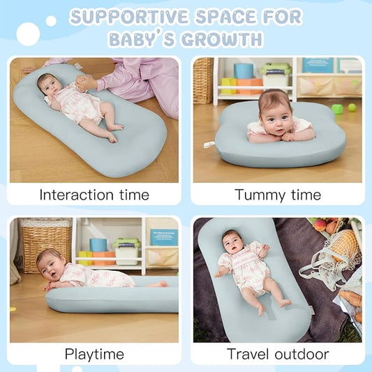 Lucakuins Baby Lounger, Bionic Design Baby Lounger for Newborn 0-24 Months, Soft Organic Cotton Breathable Lounger for Infants (Grayish Blue Baby Lounger)