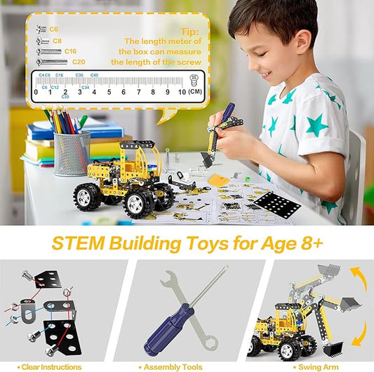 Lucky Doug Stem Building Projects Toys for Kids Boys 8 9 10 11 12 Year Old, Metal Building Construction Model kit, Building Blocks DIY Toy