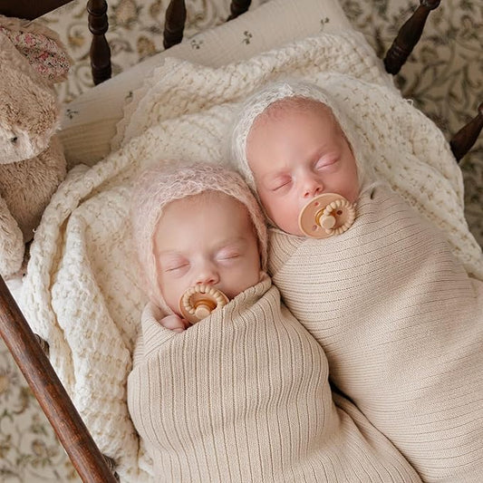Luladream Pacifier and Clip Set - Natural Rubber Nipple - Soft Teething Handle - for Infants Baby's and Toddlers, 0-18 Months (Blush Pink + Rose Petal + Clips)