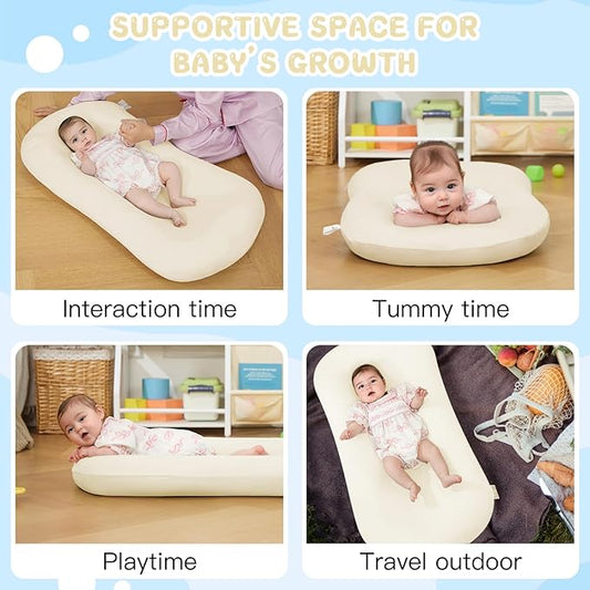 Lucakuins Baby Lounger, Bionic Design Baby Lounger for Newborn 0-24 Months, Soft Organic Cotton Breathable Lounger for Infants (Lovely White)