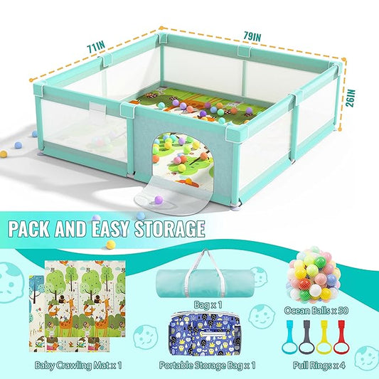 LUTIKIANG 79" x 71" Baby Playpen with Mat, Play Yard for Babies and Toddlers, Indoor/Outdoor Gate, Large Play Pen for Safety, Playtime, and Fun (Green)Regular price $205.79 USDRegular price $205.79 USDUnit price / per-