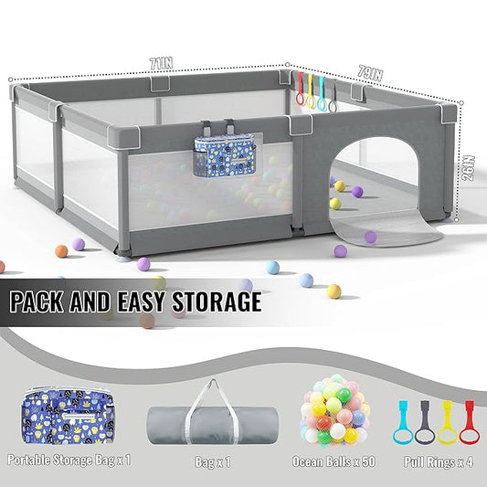 LUTIKIANG Extra Large Playpen for Toddlers, 79" X 71" with Gates, Baby Play Yards, Safety Indoor Play Area, Ocean Balls (Grey)Regular price $161.69 USDRegular price $161.69 USDUnit price / per-