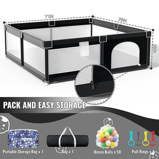 LUTIKIANG Extra Large 79" x 71" Baby Playpen with Mat, Baby Gate Play Yard, Portable Toddler Playpen, Large Play Pen for Babies, Mat Included, Play Area for Babies and Toddlers (Black)Regular price $205.79 USDRegular price $205.79 USDUnit price / per-