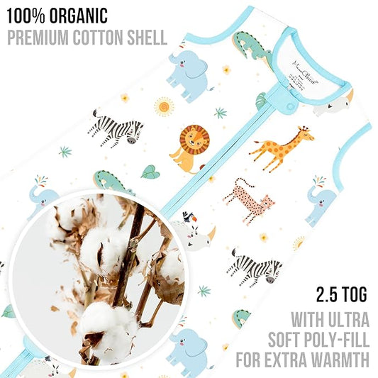 Mama Cheetah Baby Sleep Sack 2.5 TOG, Winter Baby Sleeping Bag with 2-Way Zipper, Organic Cotton Swaddle Transition Wearable Blanket for Boy Girl Infant Toddler, 0-6 Months, 1-Pack