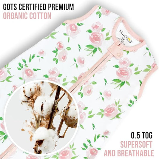 Mama Cheetah Baby Sleep Sack 0.5 TOG, Organic Cotton Baby Wearable Blanket with Two-Way Zipper, Swaddle Transition Baby Sleeping Bag for Newborn Infant Toddler Boy Girl, 6-12 Months