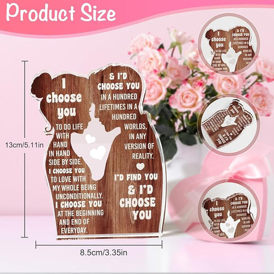 MAMAGIFTREE Valentines Day Gifts for Wife, I Love You Romantic Gifts, I Choose You with Heartfelt Message Acrylic Sign- Wedding Anniversary, Birthday Ideas for Her