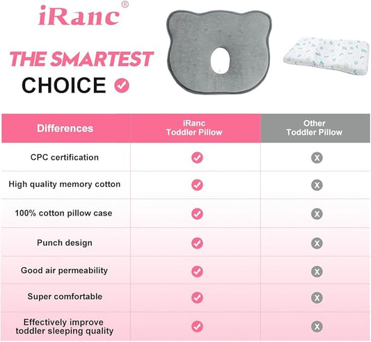 Memory Foam Baby Pillow,Cute Cartoon Bear Soft and Cozy Pillow, Breathable Bedding Set for Infants for Small Boys and Girls Prevent Flat Head
