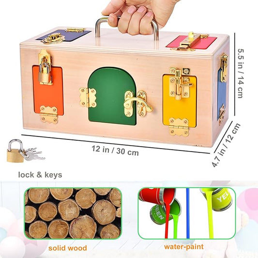MICKYU Wooden Activity Cube for Toddlers Ages 2-4 | Montessori Locks Box | Educational Toys and Gifts for Boys and Girls