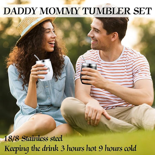 Mifoci Pregnancy Gifts for New Parents Include Mommy and Daddy Tumbler Set Keychains Bead Bracelets New Parents Gender Reveal Gifts for First Time Moms Dad to Be Mothers Fathers Day Baby Shower