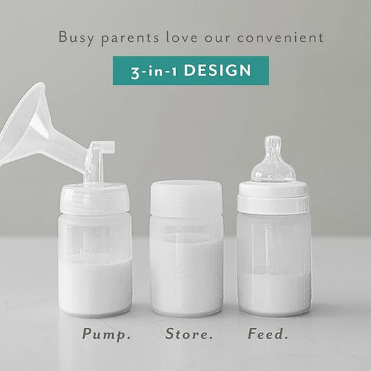 Mila's Keeper Premium Silicone Breast Milk Storage Bottles, for Pumping, Storing and Feeding, Fits Leading Pumps and Nipples, 6 oz Silicone Milk Storage Containers, Wide Neck Ocean Mist, Set of 3