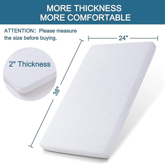 Mini Crib Mattress, 38" x 24" x 2" Dual Sided Gel Memory Foam Mattress with Waterproof, Breathable and Removable Zippered Cover