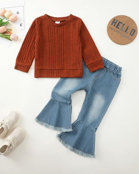 Mioglrie Toddler Girl Clothes Little Girl Denims Outfits Jeans Pants Set Little Baby Toddler Baby Clothes for Girl