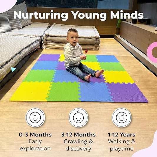 MioTetto Foam Floor Tiles for Kids - Non-Toxic Soft Comfortable Baby Play Mat, Thick Tummy Time Mat, Interlocking Foam Tiles for Development & Crawling, Soft Cushioned Play mat for Babies 6-12 Months