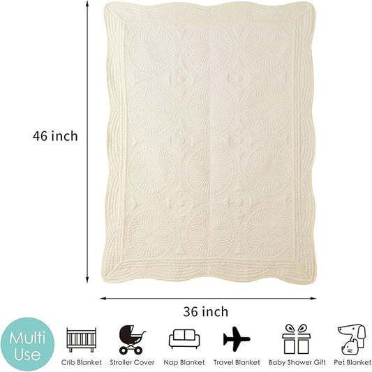 MONOBLANKS Baby Quilt Personlized Monogram Lightweight Embossed Scalloped Throw Blanket Four Seasons (White)