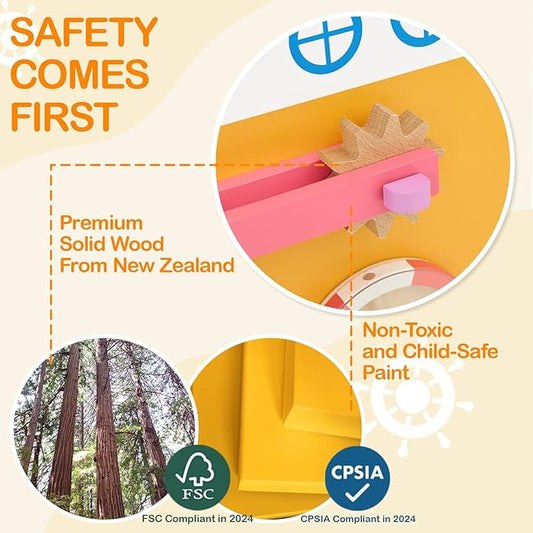 Monläurd® Wooden Ship Activity Wall Panel for Kids, Sensory Wall Toy, Activity Cube, Wall Toys for Toddlers 1-3, Playroom Toys, Daycare Furniture, Montessori Busy Board