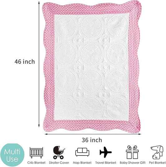 MONOBLANKS Baby Quilt Personlized Monogram Lightweight Embossed Scalloped Throw Blanket Four Seasons (Pink Gingham)