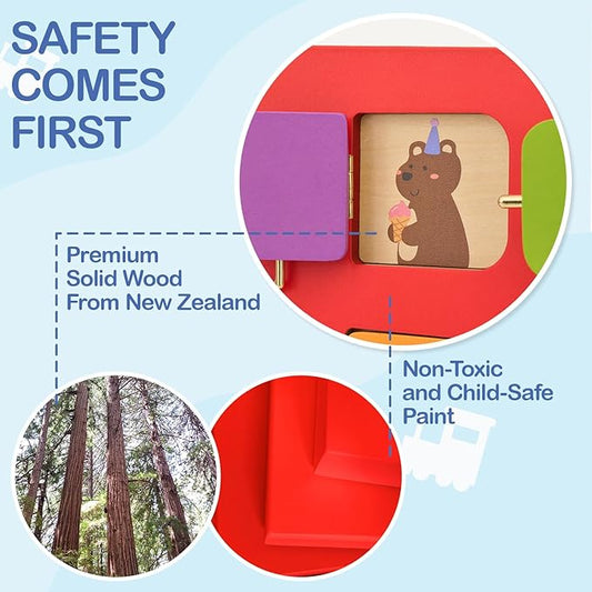 Monläurd® Wooden Train Activity Wall Panel for Kids, Sensory Wall Toy, Activity Cube, Wall Toys for Toddlers 1-3, Playroom Toys, Daycare Furniture, Montessori Busy Board