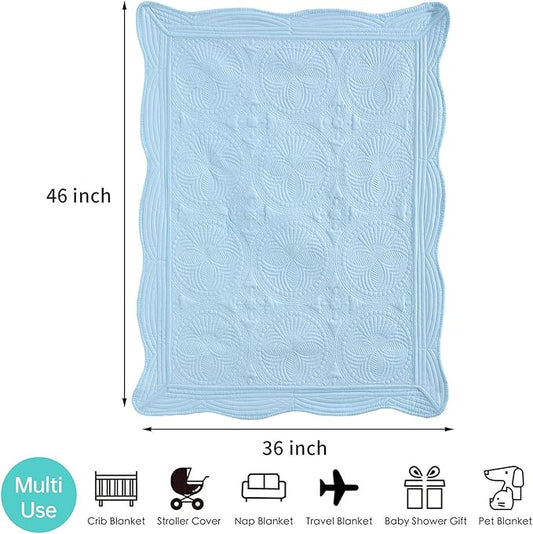 MONOBLANKS Baby Quilt Personlized Monogram Lightweight Embossed Scalloped Throw Blanket Four Seasons (Light Blue)
