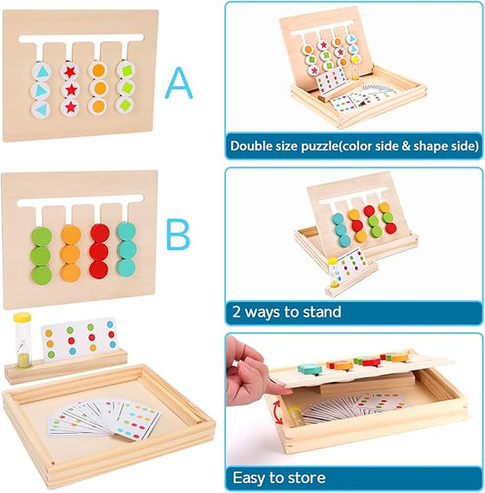 Montessori Preschool Learning Toys for Kids: Wooden Slide Puzzle Board Toys Color Shape Sorting Matching Brain Teasers Education Logic Game Gift for 3 4 5 6 7 Years Old Toddlers Child Boys Girls
