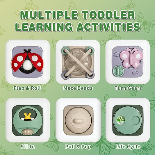 Montessori Educational Insect Busy Cube Toys for 1+ Year Old Boys Girls, Car Seat Airplane Travel Sensory Toys for Toddlers 1-3, 1st Birthday Gifts 6 12 Months