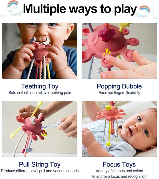 Montessori Sensory Toys for Babies 6-12 Months, Silicone Pull String Teething Toys for Baby Toys 6-12-18 Months, Infant Fidget Toys for Toddlers 1-3 Education Newborn Gifts