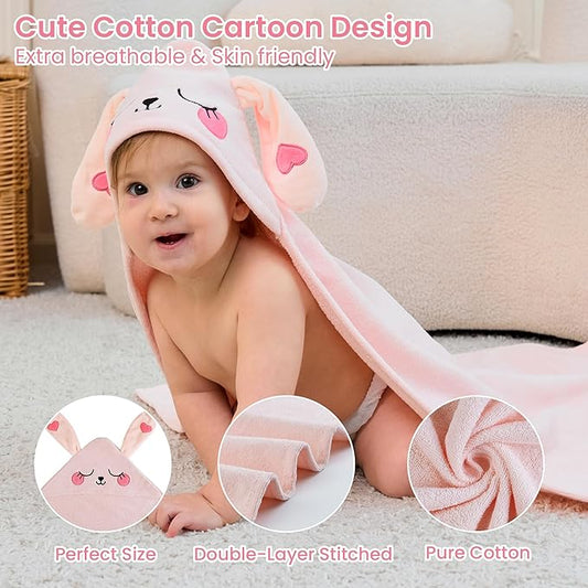 Mooreeke 2 Pack Toddler Towels - 100% Cotton Toddler Hooded Towels - Soft Baby Bath Towel with Hood for Newborn - Comfort Towel for Baby Girls and Boys - Animal Shaped (Lamb & Bunny)